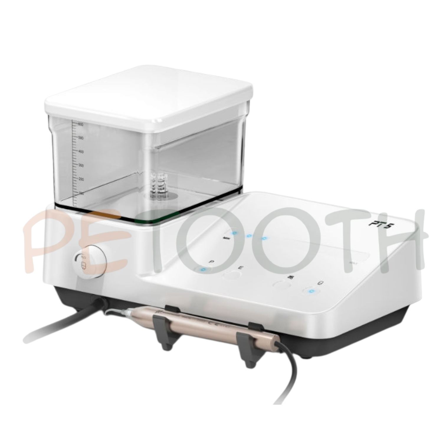 جرمگیر وودپیکر PT-5 دارای یک مخزن با حجم مناسب می باشد که تعویض آب آن بسیار ساده قابل انجام است. همچنین برای آب اکسیژنه ، هیپوکلریت سدیم ،کلرهگزیدین در مقیاس 20 میلی لیتر و متناسب با مایع جهت ضدعفونی کردن قابل استفاده می باشد.